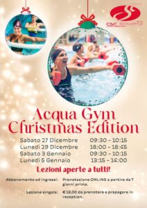 /Gli allenamenti al CSC non si fermano mai…nemmeno a NATALE! 4 lezioni di ACQUA GYM aperte a tutti: -Sabato 27 Dicembre➡️09:30-10:15 -Lunedì 29 Dicembre➡️18:00-18:45 -Sabato 3 Gennaio➡️09:30-10:15 -Lunedì 5 Gennaio➡️13:15-14:00 💦 Le lezioni sono aperte a tutti: sia a chi ha l’abbonamento attivo (previa prenotazione online) sia a chi desidera partecipare solo a una […]