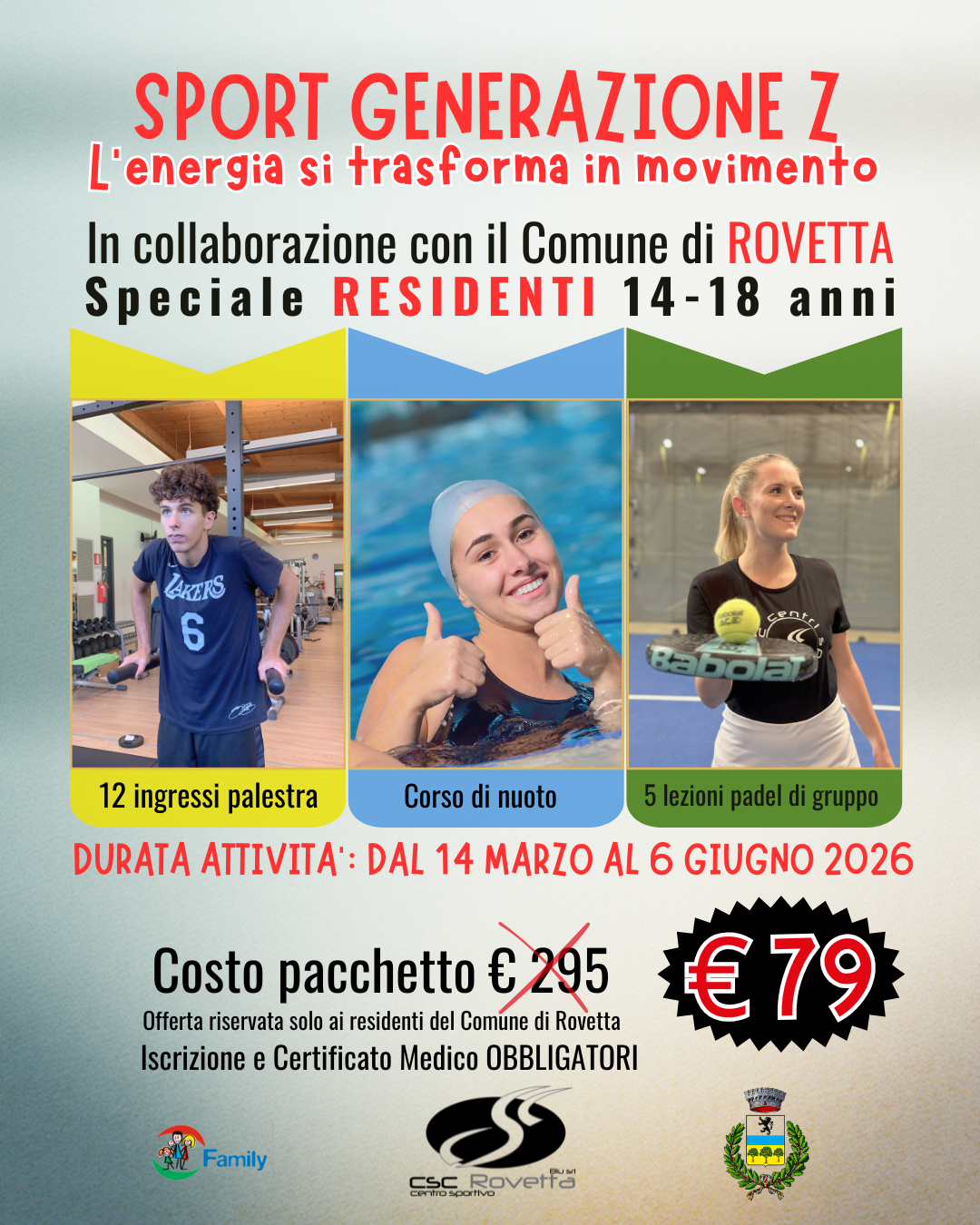 propone a tutti i residenti di età compresa tra i 14 e i 18 anni il Pacchetto Sportivo “Sport Generazione Z”,